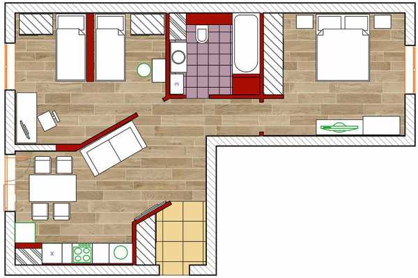 Перепланировка типичной двушки 42 метра