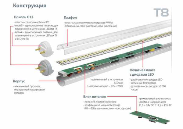 Самое главное, что у люминесцентных и светодиодных ламп одинаковые цоколи – G13. Никакая модернизация корпуса в отличие от других видов штырьковых контактов не потребуется.