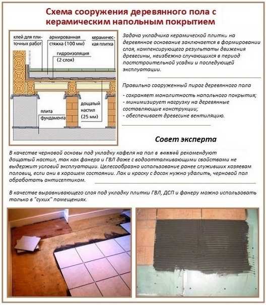 Укладка плитки на деревянное основание имеет ряд особенностей, которые необходимо учитывать