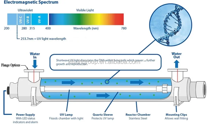Конструктивно ультрафиолетовая лампа состоит из кварцевой стеклянной трубки, способной пропускать данный вид излучения, электрода, цоколя, способных проводить электрический ток молибденовых нитей и слоя специального люминофора, нанесённого на внутреннюю поверхность трубки.