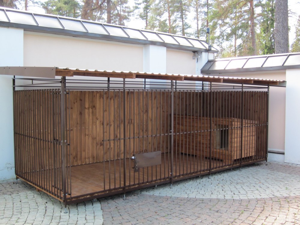 В вольере должна обязательно присутствовать будка, а в некоторых модификациях она может стать частью вольера.