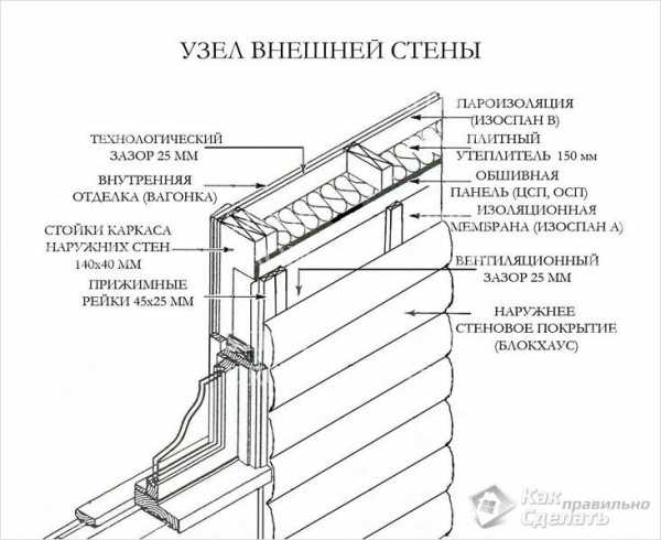 Схема обшивки стен каркасного дома под сайдинг.