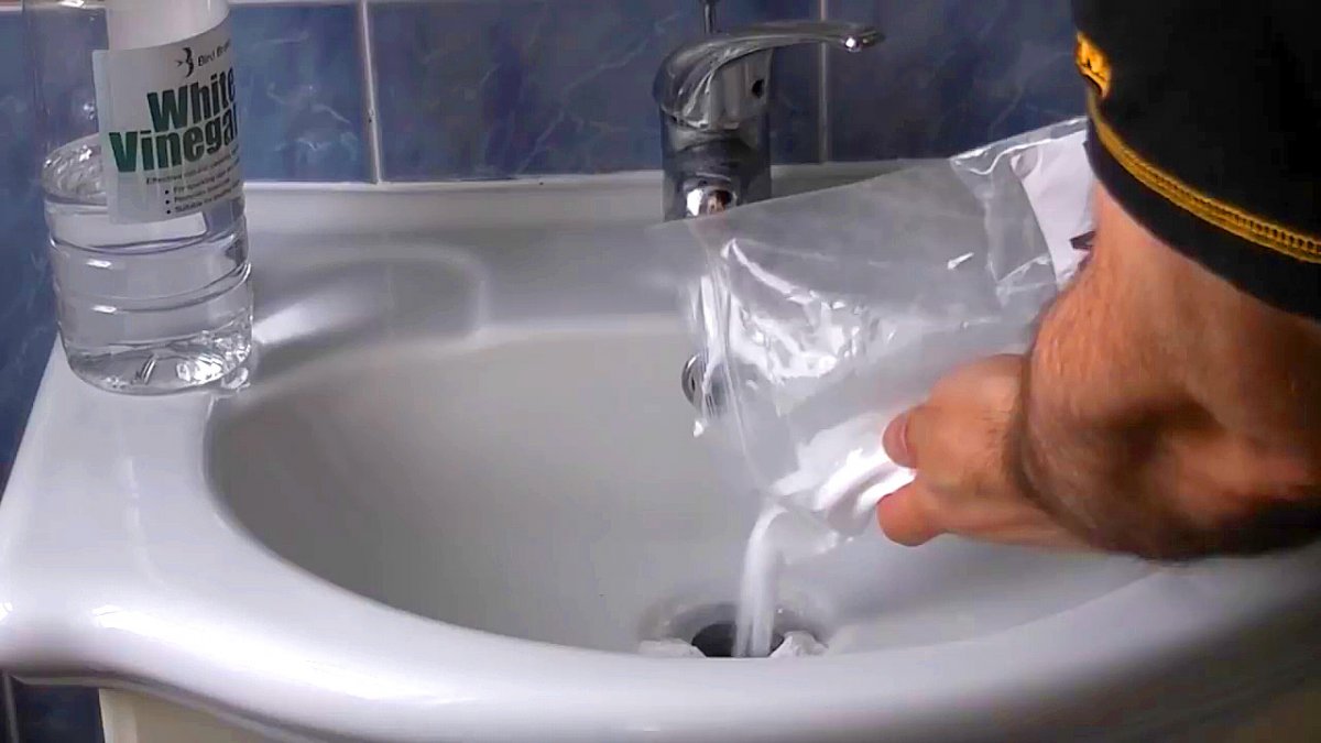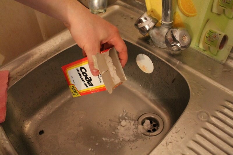 Сода и уксус. Смешать полчашки уксуса и столько же соды, получившуюся смесь следует аккуратно вылить в слив, заблокировать его пробкой и оставить минимум на 40 минут, максимум на несколько часов.