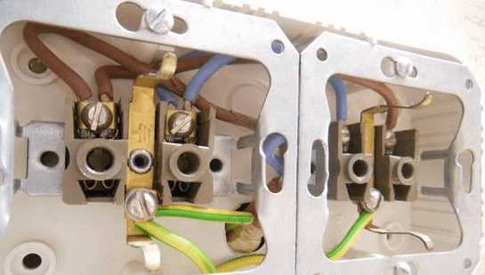 Если к клеммам подключены только две жилы, к примеру, с синей и коричневой изоляцией (ноль и фаза, согласно цветовой маркировке проводов), тогда у Вас нет заземления в доме либо квартире. И еще один момент – если между нулем и заземляющей клеммой стоит перемычка, значит, до Вас в помещении сделали зануление электропроводки, что крайне опасно.