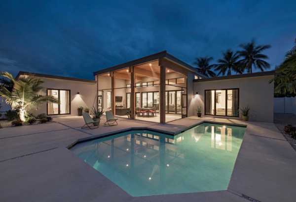 Здесь использована так называемая перекрестная конструкция. В чем ее суть? Чтобы не терять ценное потолочное пространство такой низкой крыши, но и не оставить стропильную систему слишком слабой, она усиливается при помощи перекрещивающихся подпорок. Как вы видите, выглядит все это довольно эффектно и практично. Возьмите на заметку!