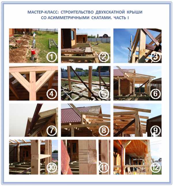 Двускатная крыша веранды с разными скатами