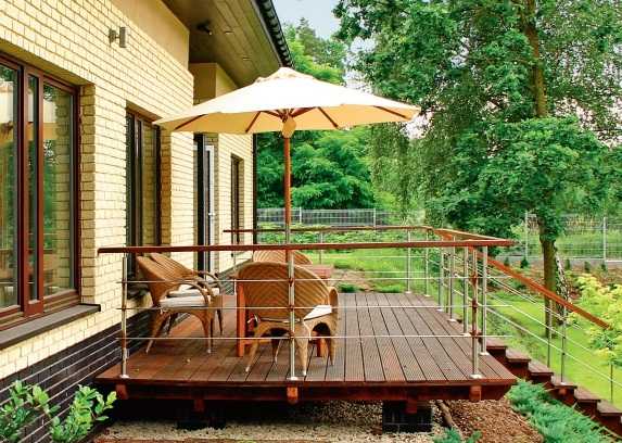 Отметим, что террасу можно построить где угодно – возле дома, на крыше, в виде балкона и т. д. Но чаще встречается вариант на уровне дома, поэтому будет рассматриваться именно такая конструкция.