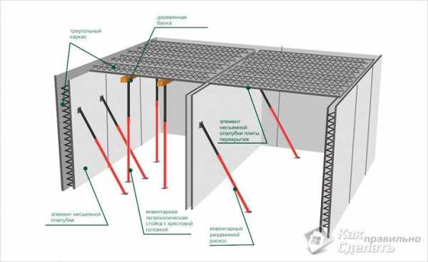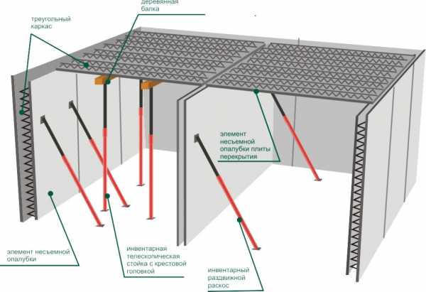 Π‘ΠΏΠ΅ΡΠ²Π° Π²ΡΡΡΠ°Π²Π»ΡΡΡΡΡ Π²Π΅ΡΡΠΈΠΊΠ°Π»ΡΠ½ΡΠ΅ ΠΎΠΏΠΎΡΡ, ΡΠ²Π΅ΡΡ Ρ ΡΠΊΠ»Π°Π΄ΡΠ²Π°Π΅ΡΡΡ ΡΠ°Π½Π΅ΡΠ° ΠΈΠ»ΠΈ ΠΏΠΎΠ΄ΠΎΠ±Π½ΡΠΉ ΠΌΠ°ΡΠ΅ΡΠΈΠ°Π» Π΄Π»Ρ Π·Π°Π»ΠΈΠ²ΠΊΠΈ ΡΠ°ΡΡΠ²ΠΎΡΠ°. ΠΠ΅ΠΎΠ±Ρ ΠΎΠ΄ΠΈΠΌΠΎ ΡΠ΄Π΅Π»Π°ΡΡ ΠΎΠΏΠ°Π»ΡΠ±ΠΊΡ ΠΈ Π·Π°Π»ΠΈΡΡ Π±Π΅ΡΠΎΠ½. Π ΡΠΈΠ»Ρ ΡΠ²ΠΎΠ΅ΠΉ ΡΠ»ΠΎΠΆΠ½ΠΎΡΡΠΈ ΠΈ ΡΡΡΠ΄ΠΎΠ΅ΠΌΠΊΠΎΡΡΠΈ, Π΄Π°Π½Π½ΡΠΉ Π²Π°ΡΠΈΠ°Π½Ρ Π² ΠΌΠ½ΠΎΠ³ΠΎΡΡΠ°ΠΆΠ½ΡΡ ΡΠ°ΡΡΠ½ΡΡ Π·Π΄Π°Π½ΠΈΡΡ ΠΏΡΠ°ΠΊΡΠΈΡΠ΅ΡΠΊΠΈ Π½ΠΈΠΊΠΎΠ³Π΄Π° Π½Π΅ ΠΈΡΠΏΠΎΠ»ΡΠ·ΡΠ΅ΡΡΡ.