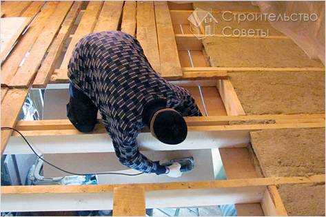 Π Π½ΠΈΠΆΠ½Π΅ΠΉ ΡΠ°ΡΡΠΈ Π±Π°Π»ΠΎΠΊ Ρ ΠΎΠ±Π΅ΠΈΡ Π±ΠΎΠΊΠΎΠ² ΠΏΡΠΈΠ±ΠΈΠ²Π°ΡΡΡΡ ΡΠΎΠ½ΠΊΠΈΠ΅ Π±ΡΡΡΠΎΡΠΊΠΈ, Π½Π° ΠΊΠΎΡΠΎΡΡΠ΅ ΠΏΠΎ Π΄Π΅ΡΠΆΠ°ΡΠΈΠΌ Π΄ΠΎΡΠΊΠ°ΠΌ Π±ΡΠ΄Π΅Ρ ΡΠΊΠ»Π°Π΄ΡΠ²Π°ΡΡΡΡ ΡΡΠ΅ΠΏΠ»ΠΈΡΠ΅Π»Ρ. ΠΠ°Π»Π΅Π΅ β ΡΡΡΡΠΎΠΉΡΡΠ²ΠΎ Π³ΠΈΠ΄ΡΠΎΠΈΠ·ΠΎΠ»ΡΡΠΈΠΈ ΠΈ ΡΠ΅ΡΠ½ΠΎΠ²ΠΎΠΉ ΠΏΠΎΠ» Π½Π° ΡΠΎΠ½ΠΊΠΈΡ Π±ΡΡΡΠΊΠ°Ρ .