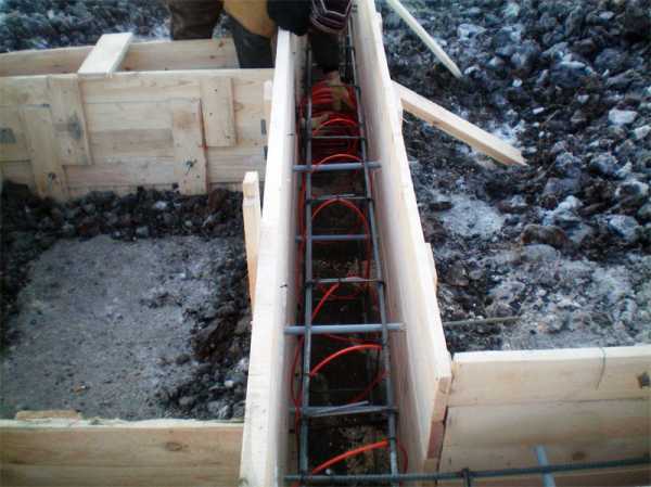 - На этом этапе работы важно, чтобы все коммуникации были подготовлены. Если газ и электричество можно провести после строительства дома, то водопроводные и сливные трубы должны быть размещены заранее.