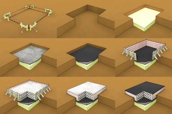 Технологическую карту процесса построения плитного варианта фундамента можно привести в нескольких строчках: