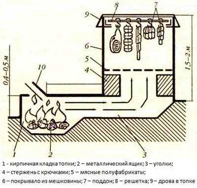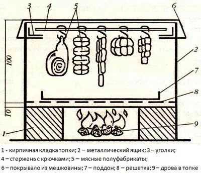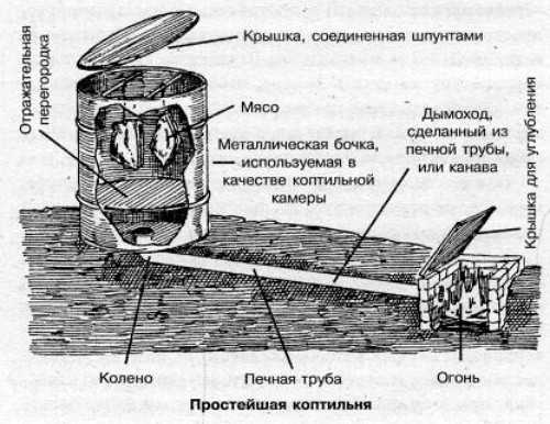Схема выше показывает, что такую коптильню можно построить самому даже в походных условиях.