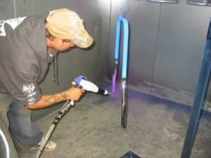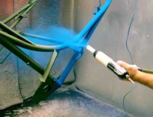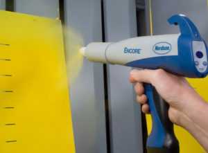 - Специальный электростатический пистолет для нанесения тонкого слоя порошка, который распыляется посредством направленного потока сжатого воздуха.