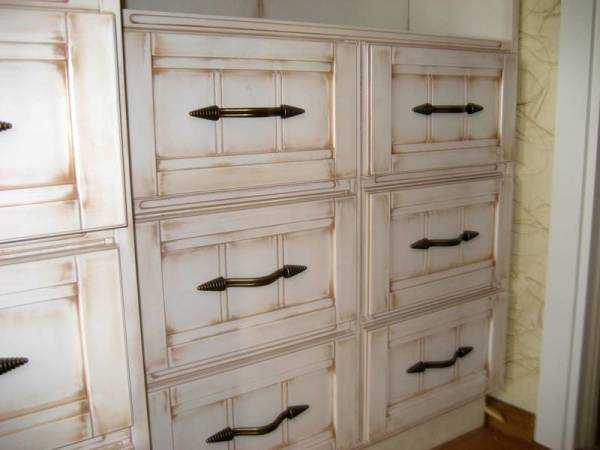 Покраска фасадов мебели под старину.