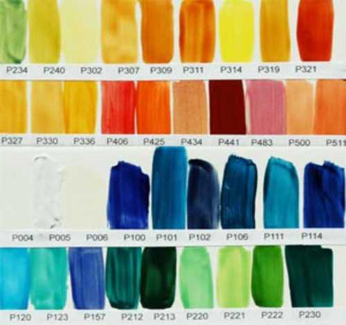 Именно поэтому цветовая гамма такого типа красок достаточно ограничена – производители используют в составах только специальные щелочестойкие пигменты.