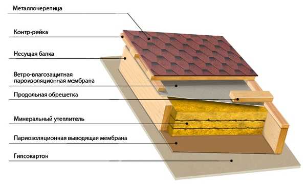 Перекрытие для неотапливаемого чердака, состоит из таких слоев: