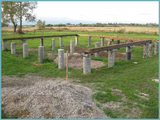 Для таких домов возводят мелко заглубленные виды фундамента: ленточный, столбчатый, из бетонных блоков. Обеспечением гарантии прочности в ленточном фундаменте служит арматура, в столбчатом – монолитный ростверк, а в блочном фундаменте – железобетонные обвязки. В целом, правила и технология закладки фундамента не отличается от таковой для других типов домов.