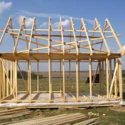 Следующим этапом строительства является возведение каркаса. Он является основой дома такого типа и представляет собой конструкцию, состоящую из вертикальных стоек, ригелей, горизонтальных обвязок. Изготавливают его как из дерева, так и из металла. Деревянный каркас является более простым и дешевым вариантом, в этом случае не нужно применять сварочное оборудование.