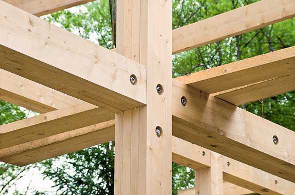 Не рекомендуется применять металлический крепеж, потому что древесина быстро гниет при соприкосновении с металлическими предметами. Надёжнее будет закрепить соединения нагелями, это увеличит срок эксплуатации.
