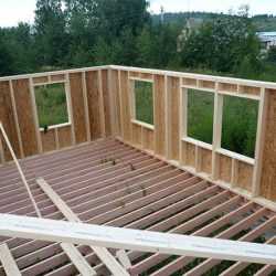 Балки устанавливают каждые 300, 400 или 600 мм, выбирая расстояние в соответствии с материалом обшивки. В местах, где предполагается установка окон, следует заложить под ними дополнительные горизонтальные балки.
