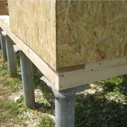 Под каркасный дом чаще всего делают свайные фундаменты с ростверком. Верхняя кромка ростверка должна быть тщательно выровнена, если с первого раза этого достичь не удалось, следует установить маяки и уложить слой выравнивающего раствора по направляющим.