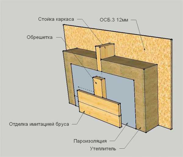 Каркасная стена состоит из собственно каркаса и утеплителя. Выполняют их по следующей технологии: