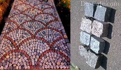 Для дорожек в саду и на даче чаще всего используется брусчатка колотого или пилено-колотого вида неправильной формы и небольшого размера (7×7×5 см или 5×5×3 см). Она применяется для выполнения мелкого орнамента. Если вы планируете сделать несложный геометрический узор, можно взять для этой цели плитку размером 20х10х4,5 см из клинкерного кирпича. Воплощая естественный или природный стиль, воспользуйтесь брусчаткой, которую делают из натурального камня.