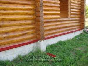 Для того чтобы защитить цоколь в доме деревянного вида, на фундамент устанавливают отливы. При использовании сруба, нужно создать герметичное соединение всех узлов, и углов наружного вида.