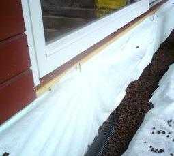 В качестве утеплителя для фундамента можно применять те же материалы, что и для фасада. Раньше достаточно часто использовался керамзит. Сегодня довольно популярным является полиуретан и минеральная вата. С появлением современных материалов использование керамзита постепенно сошло на нет. Для того чтобы качественно утеплить фундамент деревянного дома, следует полностью оголить этот ярус строения. По всему периметру здания необходимо вырыть ров. Глубина его должна соответствовать размеру фундамента. Ширина рва – порядка полуметра. Поверхность фундамента очищается. При необходимости устраняются дефекты. Далее необходимо при помощи рубероида и мастики сделать гидроизоляцию. Верхние листы утеплителя необходимо поднять над уровнем грунта на 30-40 см. Укладка материала осуществляется на сухую поверхность. Для более качественной теплоизоляции следует места стыков плит материала заполнить монтажной пеной. После завершения данных работ нужно на дно рва засыпать песок. Сверху необходимо уложить остатки теплоизоляционного материала и присыпать гравием. Высота слоя должна быть порядка 50-60 см. Сверху гравий следует присыпать землей либо песком или залить бетоном.