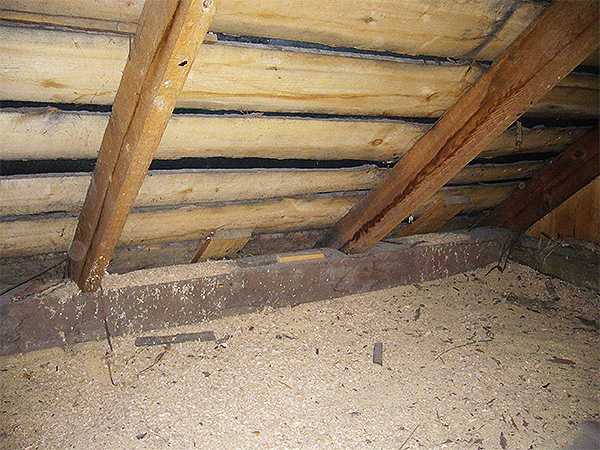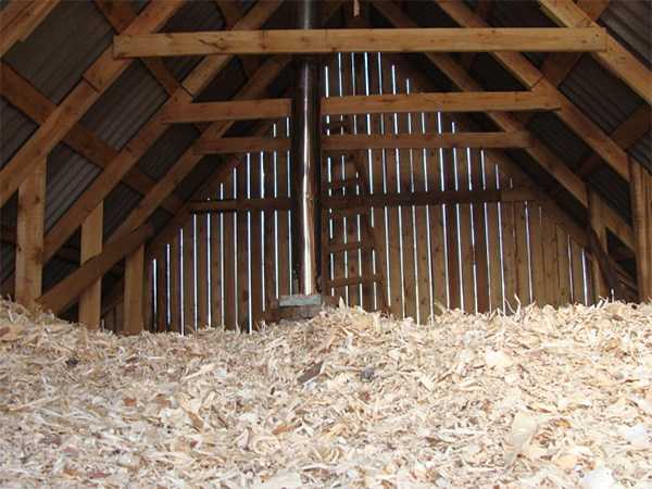 Утепление деревянного потолка опилками