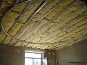 - делается деревянный или металлопластиковый каркас для дальнейшей обшивки потолка гипсокартоном или вагонкой;