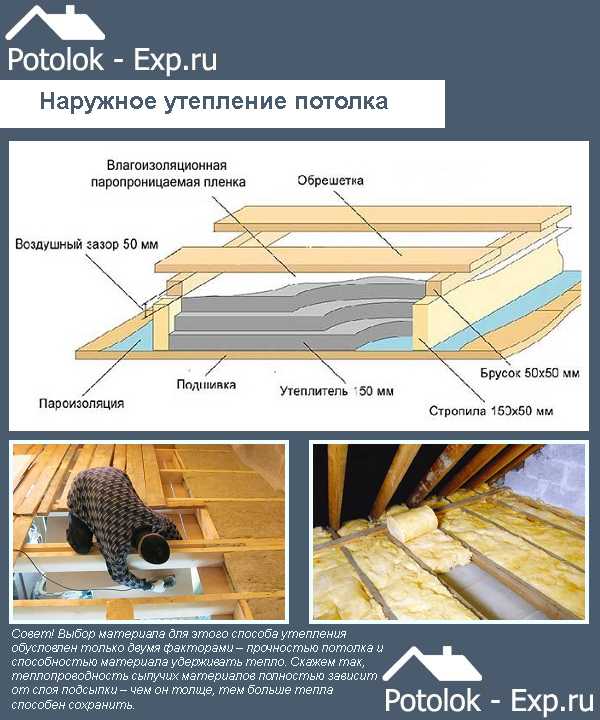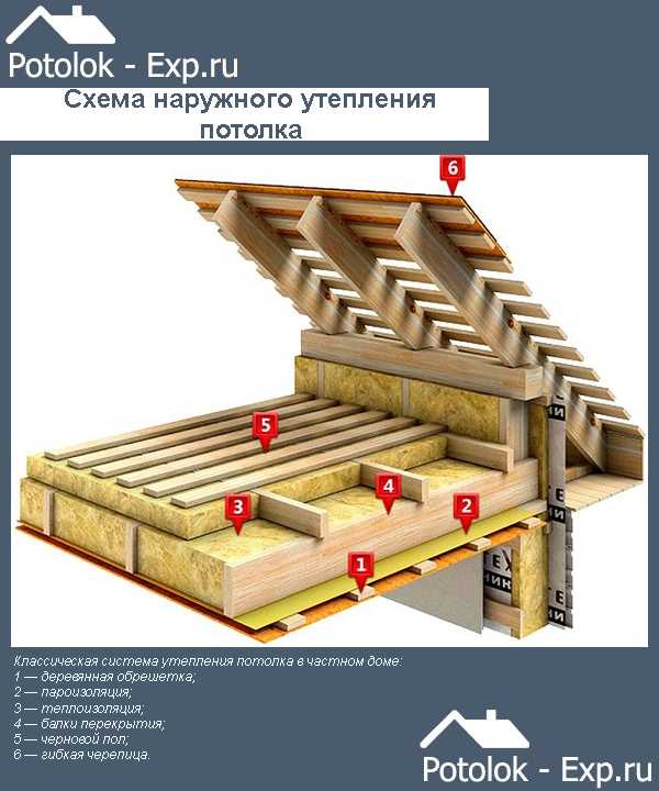 Утепление потолка в частном доме своими руками снаружи и изнутри