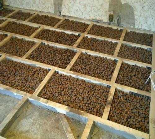 - засыпается слой керамзита или более влагостойкого вермикулита толщиной от 15 до 20 см;