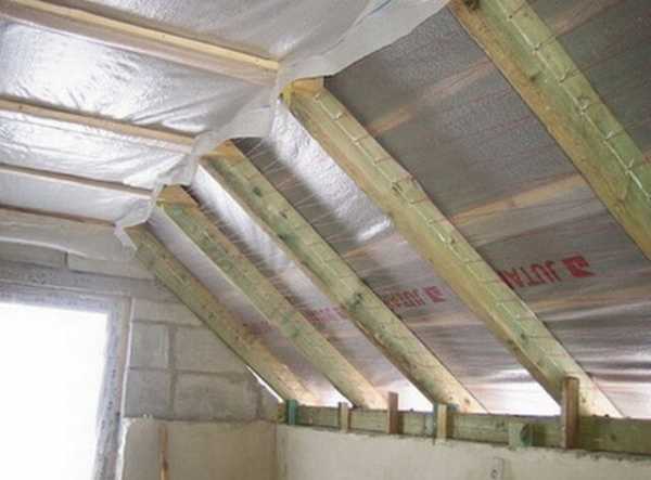 - К стропилам горизонтально прибиваются рейки, толщина которых должна превышать толщину утеплителя на 1-2 см. Расстояния между рейками должно быть достаточно для укладки теплоизоляционных плит.