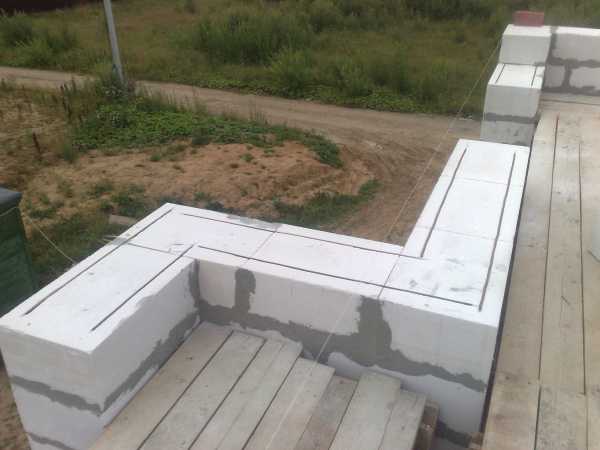 При кладке стен армирование сеткой производится при использовании всех видов блоков, под перекрытие заливается армопояс по всему периметру, над оконными и дверными проемами — стандартные заводские перемычки или литьевой бетон.