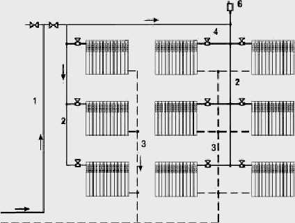 Ее несомненным достоинством является возможность раздельного регулирования нагрева отопительных приборов. Для этого на подающей трубе устанавливается регулировочный кран, позволяющий менять расход теплоносителя. Запорная аппаратура на обратной трубе не устанавливается.