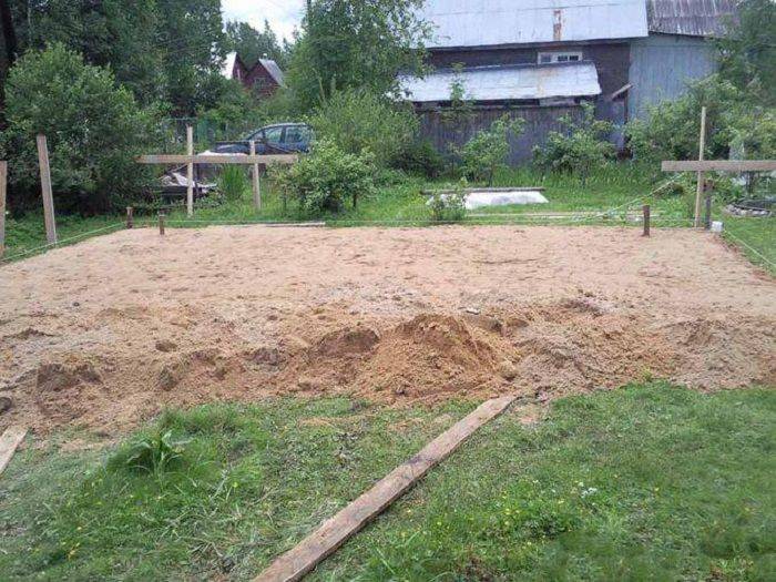 - В котлован устанавливается опалубку, которая по высоте должна превышать грунт.