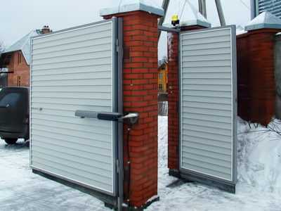 К недостатку относится наличие большой консоли по отношению к местам крепления и столбам. Это усиливает нагрузку на опоры и петли. Под тяжестью, створки могут осесть и вырвать их со своих мест. Поэтому для такой конструкции, желательно подбирать не тяжелый материал.