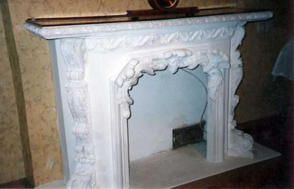 Фальш-камин украшен фактурной мраморной резьбой