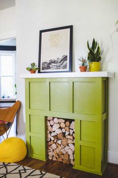 Еще одним заменителем пламени являются бревна: выложите дрова в живописном беспорядке или «шалашиком» – это создаст впечатление, что камин рабочий и в любую минуту в нем может запылать огонь.