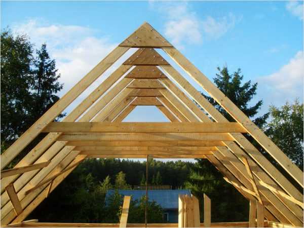 Концы крышного каркаса надежно крепятся к лагам перекрытий. Крыша обычно имеет форму равнобедренного треугольника. Расстояние меж стропилами соотносится с шириной материала, который предполагается использовать в качестве утеплителя или покрытия.