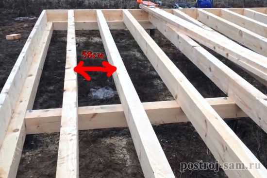На этом же этапе укладываются лаги пола. Для этого в брусе вырезаются пазы, в которые и следует уложить лаги на расстоянии не более 60 см.