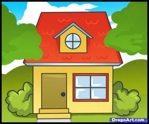 Прежде чем учить детей рисовать дом, покажите им готовые картинки. Это могут быть иллюстрации к сказке «Кошкин дом» (С.Маршак), где обычно представлен красивый домик с резными ставнями и украшениями. Можно рассмотреть домик в деревне или в лесу. Довольно часто в сказках домики в лесу рисуют на курьих ножках, а в них живет Баба Яга или другие сказочные герои. Домики в деревне обычно очень аккуратные, разрисованные, с трубой, через которую выходит дым от печи. Картинки и раскраски карандашом помогут ребятам представить, какой домик они хотели бы нарисовать.