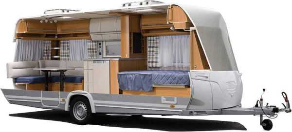 Дом-прицеп может быть стационарным, может — раскладным. Есть еще прицепы-палатки. Первый вид транспортируется в «жилом» виде, второй и третий — в сложенном. Складной дом-прицеп раскладывается только на стоянке. Его преимущества — меньше разбалтывается в пути, меньше высота, а значит, нет ограничений по проезду. Минусы — требуется время чтобы его разложить/сложить. Вся процедура занимает минут пять, но сразу после остановки отдыхать не получится.