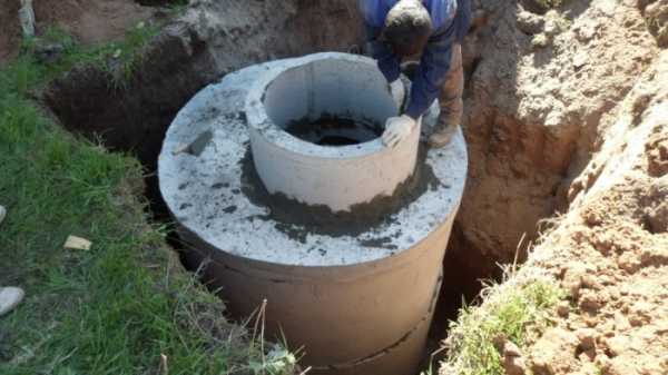 Как только первое кольцо опустилось ниже уровня земли, на него сверху ставится новое. В швах размещают просмоленный канат для герметизации.
