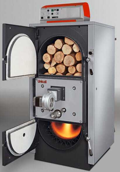 Еще одной особенностью является горелка с помощью, которой и поджигают, а в некоторых случаях и доставляют (пеллетные горелки) топливо. Для каждого вида сырья предусмотрена уникальная система горения.