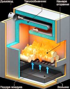 Хорош такой агрегат тем, что неприхотлив к качеству и виду топлива. Топить можно дровами, углем, брикетами. Кроме того, из-за простоты конструкции такие отопители достаточно дешевы и просты в эксплуатации.