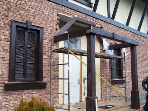 Перед тем, как из дерева сделать козырек над крыльцом , выбранную породу древесины следует обработать гидрофобными, антисептическими пропитками, обеспечивающими защиту материала от неблагоприятных факторов.