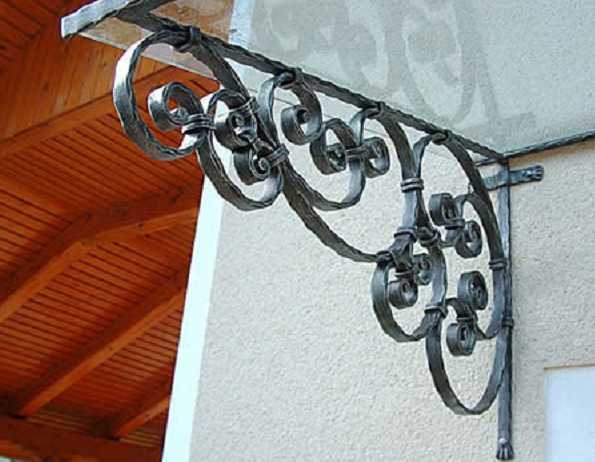 - Сам каркас консольного козырька над входной дверью будет перетяжелен дополнительными силовыми элементами, и уже не будет смотреться легкой и воздушной конструкцией, а в случае наличия на козырьке массивного декора вес вообще станет проблемой;