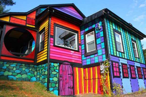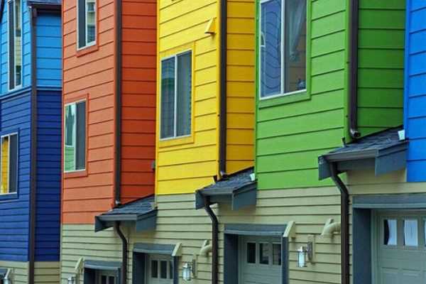 5. Как ни удивительно, но яркие и смелые цвета лучше всего подходят для ничем не примечательных или даже отталкивающих фасадов, т.к. отвлекают наше внимание от деталей низкого качества и дизайна. В то же время, если ваш дом имеет красивые барельефы или другие привлекательные элементы, то цвет фасада должне быть нежным или нейтральным.